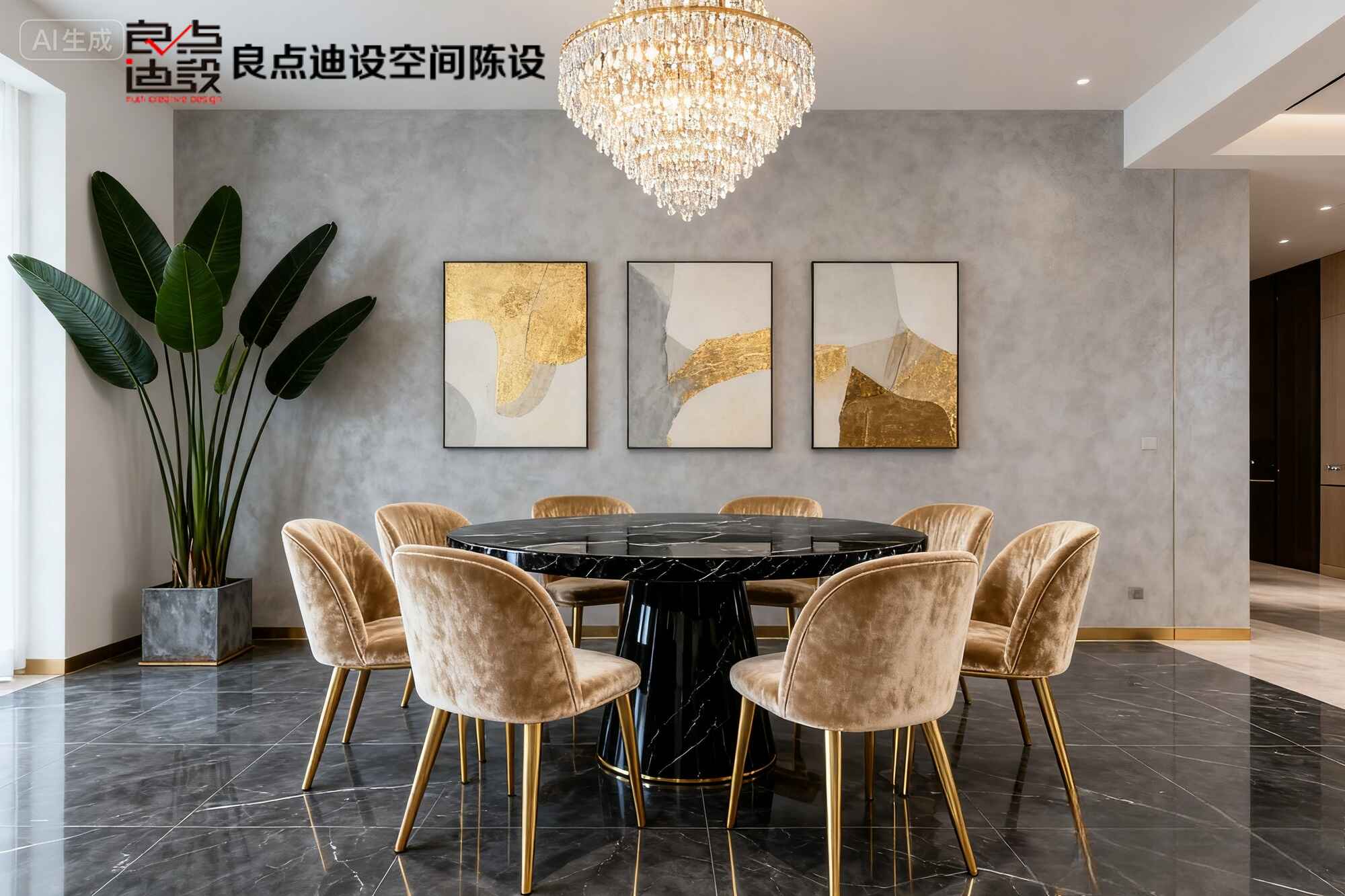 ?? 黑金配色絕絕子!這套輕奢風餐廳裝修軟裝設計,我直接碼住復制!
