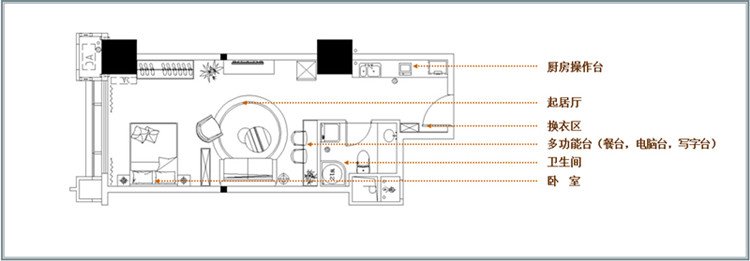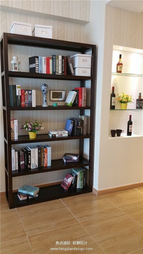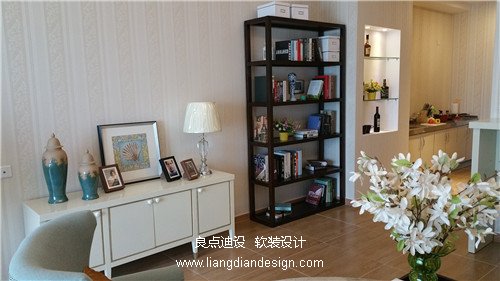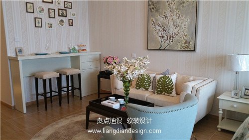 空間軟裝色彩:深胡桃木色 乳白色、淡藍色