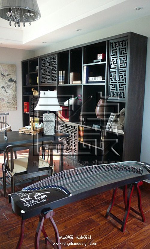 家具多以深色為主,黑、白、灰色為基調,加入皇家住宅的紅、黃、藍、綠等作為局部色彩。裝飾材料采用瓷器、陶藝、字畫等