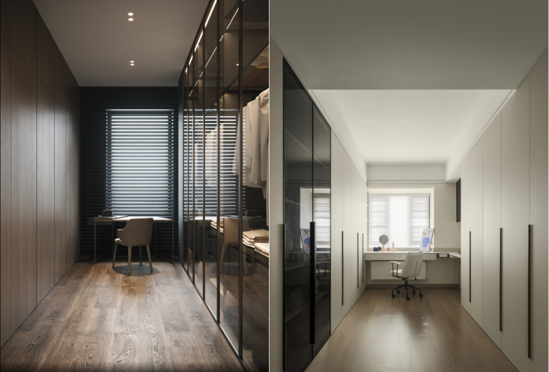 設計思路:基本不更改硬裝結構,在保留四個房間的前提下,增加各個空間的收納空間。北房間用來做多功能房間,以收納和辦公學習為主,保留居住的功能。