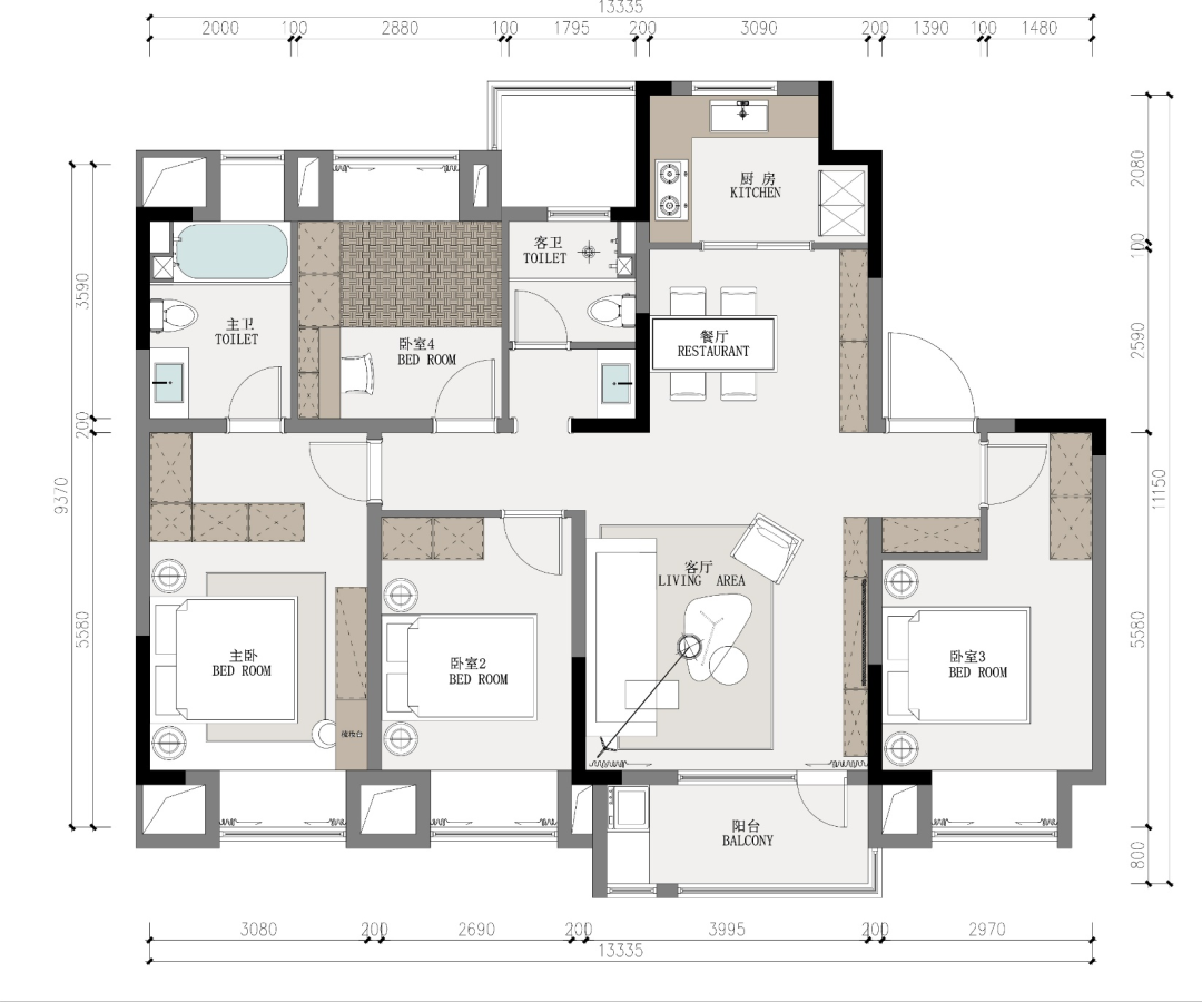 1、標配4房2衛,滿足更多功能需求,可預留空間足夠;