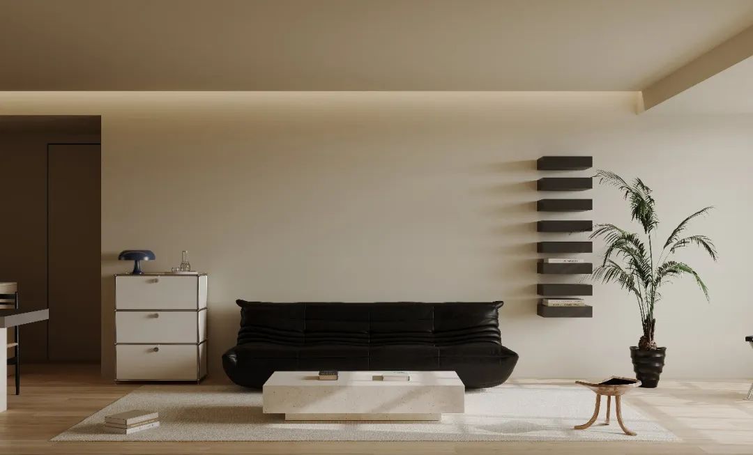與***稿方案有所不同的是,將客廳陽臺空間打通,整體空間更加開闊;餐廳增加卡座,卡座一般靠墻或在角落,其占用空間比椅子少,必要時可以坐更多的人,還能增加收納空間。北次臥作為客臥,設計為榻榻米+衣柜+書桌結合的形式。