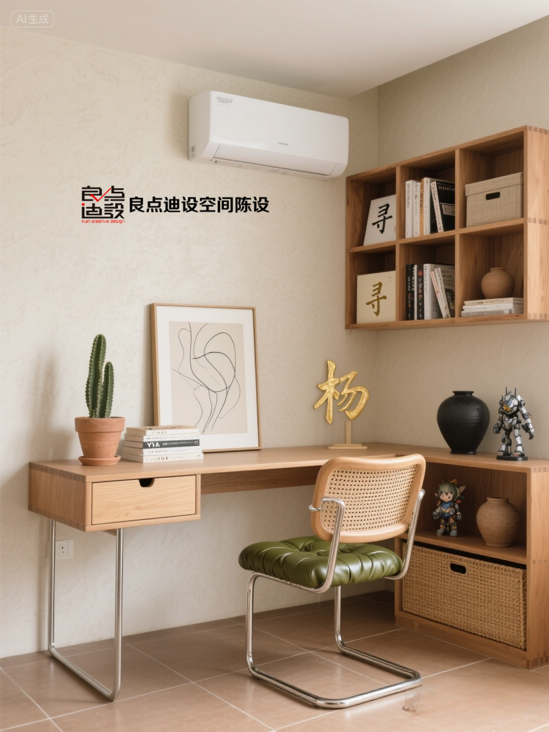 核心區整一套同色系木質書桌+內置書架,穩穩的溫馨感就立住了!開放式書架別塞太滿,書籍+小擺件錯落有致,呼吸感拿捏。搭配一把復古調調辦公椅,實用和顏值?我全都要!
