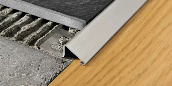 磚在陰角陽角收口時,通常采取45°角對拼的方式。這樣不僅容易崩邊、開裂,還存在一定的安全隱患。而圓潤的金屬收邊條不僅增強了裝飾效果,也一并消除了這些問題。
