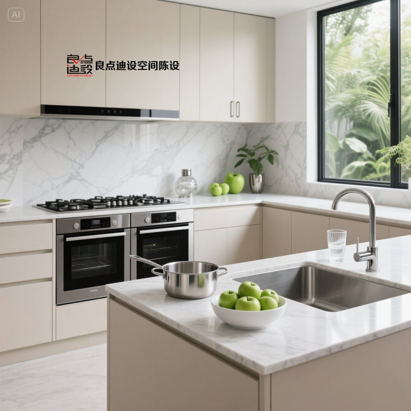 絕了!這套米白廚房軟裝設計案例爆紅??,窗外綠景+高級感,美到窒息?